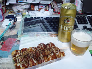 タコヤキとビールを買った。