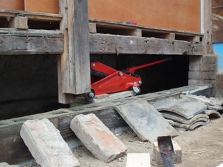 基礎作りのほうは、コンクリの上に根太になる角材を設置。