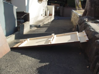 ガレージの左右をぶっとうす角材にしては、