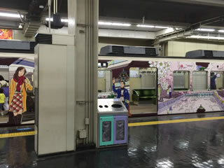 阪急電車に乗ろうとしたら、華やかな電車が入ってきた。