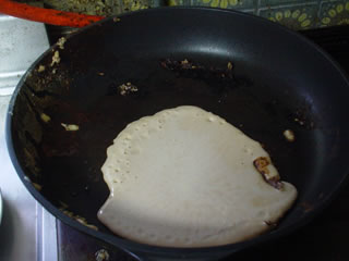 パンケーキのもとを流します。