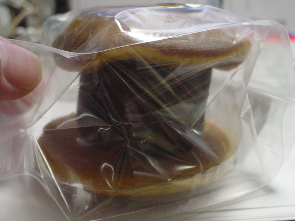 どらやきの餡がはきれるように入っている。