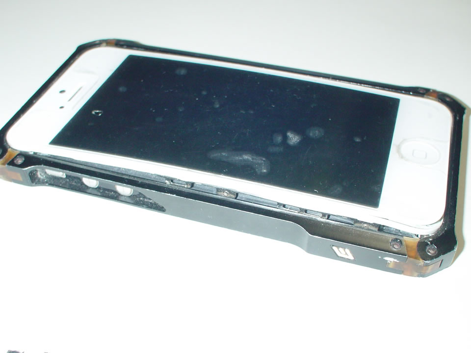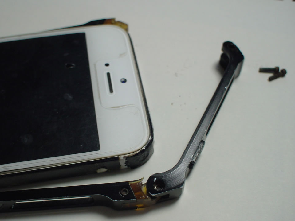 このiphone5Cは、本体にネジで固定するバンパーなるものをつけていたので